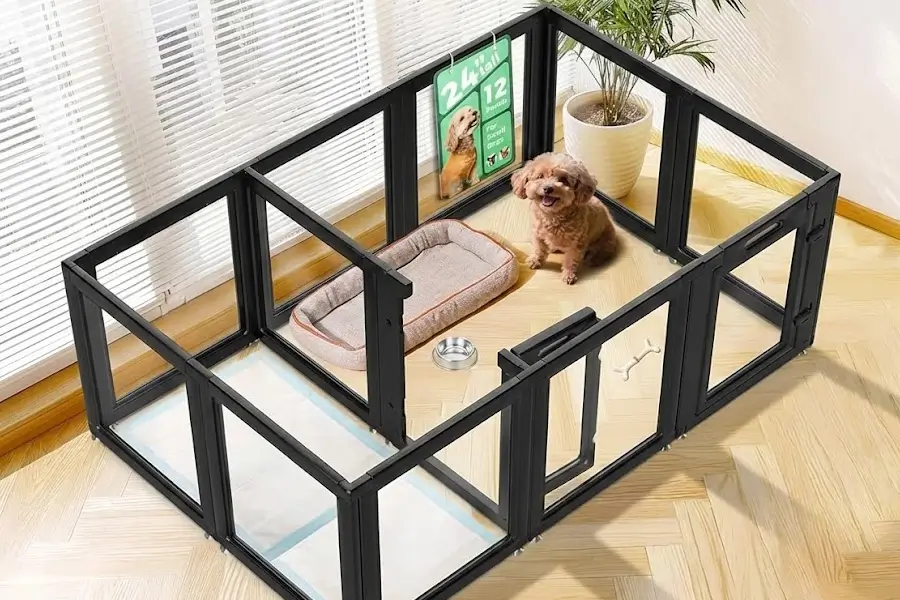 However, you have to be realistic about the material properties when choosing this product. While the aviation-grade aluminum frame and connectors are incredibly sturdy, acrylic is essentially a form of plastic. It is durable enough for puppies and small-to-medium dogs, but a large, powerful dog could likely knock it over or scratch up the panels if they are determined to get out. It is strictly an indoor solution for well-behaved or small pets, and not a heavy-duty holding cell for a 70lb dog with behavioral destruction issues.